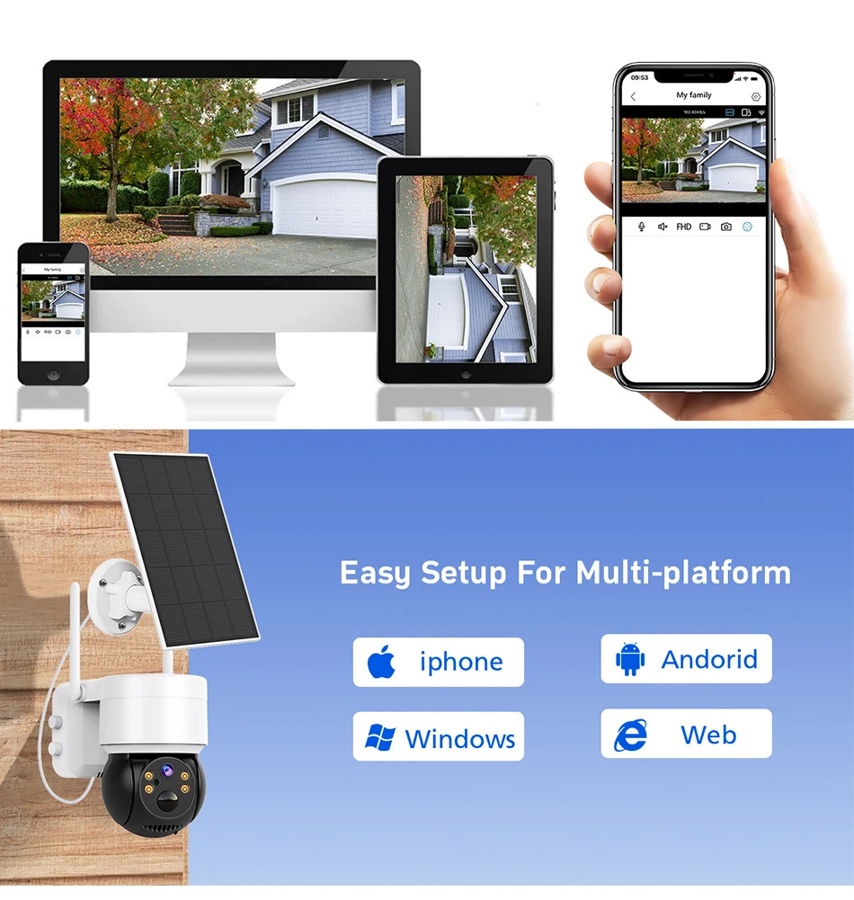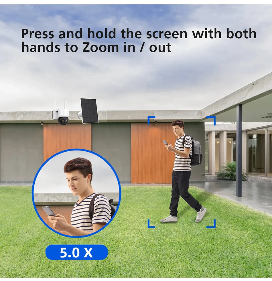 El panel solar integrado de 5 W proporciona una potente fuente de energía para la cámara, lo que prolonga su tiempo de espera.