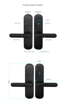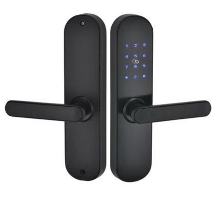 Cerradura inteligente accesible en precio para puertas interiores y exteriores de madera y metal. Ofrece una instalación sencilla en puertas con un grosor de 30 a 100 mm.