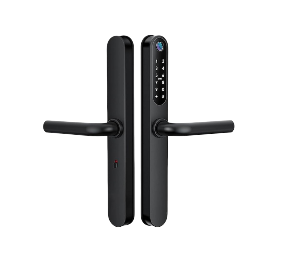 Cerradura biométrica de acero inoxidable para cualquier puerta, incluidas las puertas de plástico fino o perfil de aluminio con mecanismo de cierre multipunto.