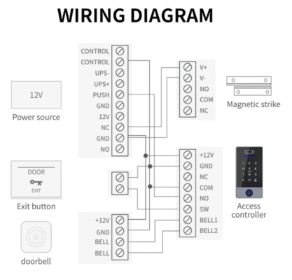 Este controlador no está diseñado para el control directo de cerraduras magnéticas con consumo de corriente superior a 1 A ni de cerraduras electromecánicas.Si tienes dudas sobre la conexión, contacta con nuestros especialistas. Te ofreceremos la solución óptima y te recomendaremos el equipo y accesorios adicionales necesarios.